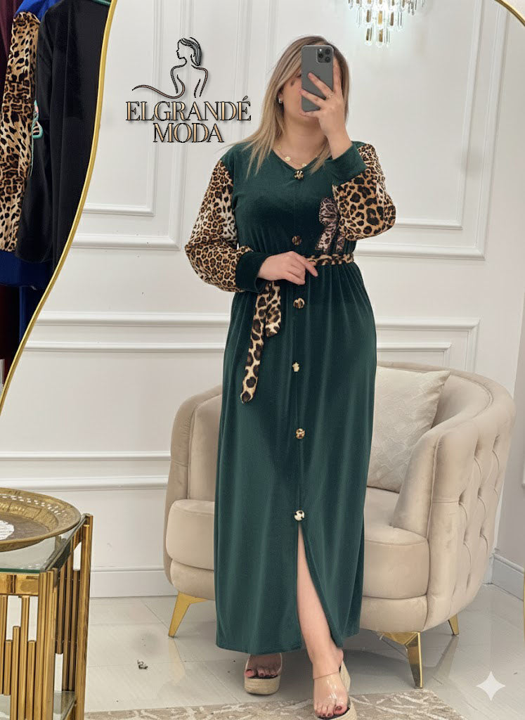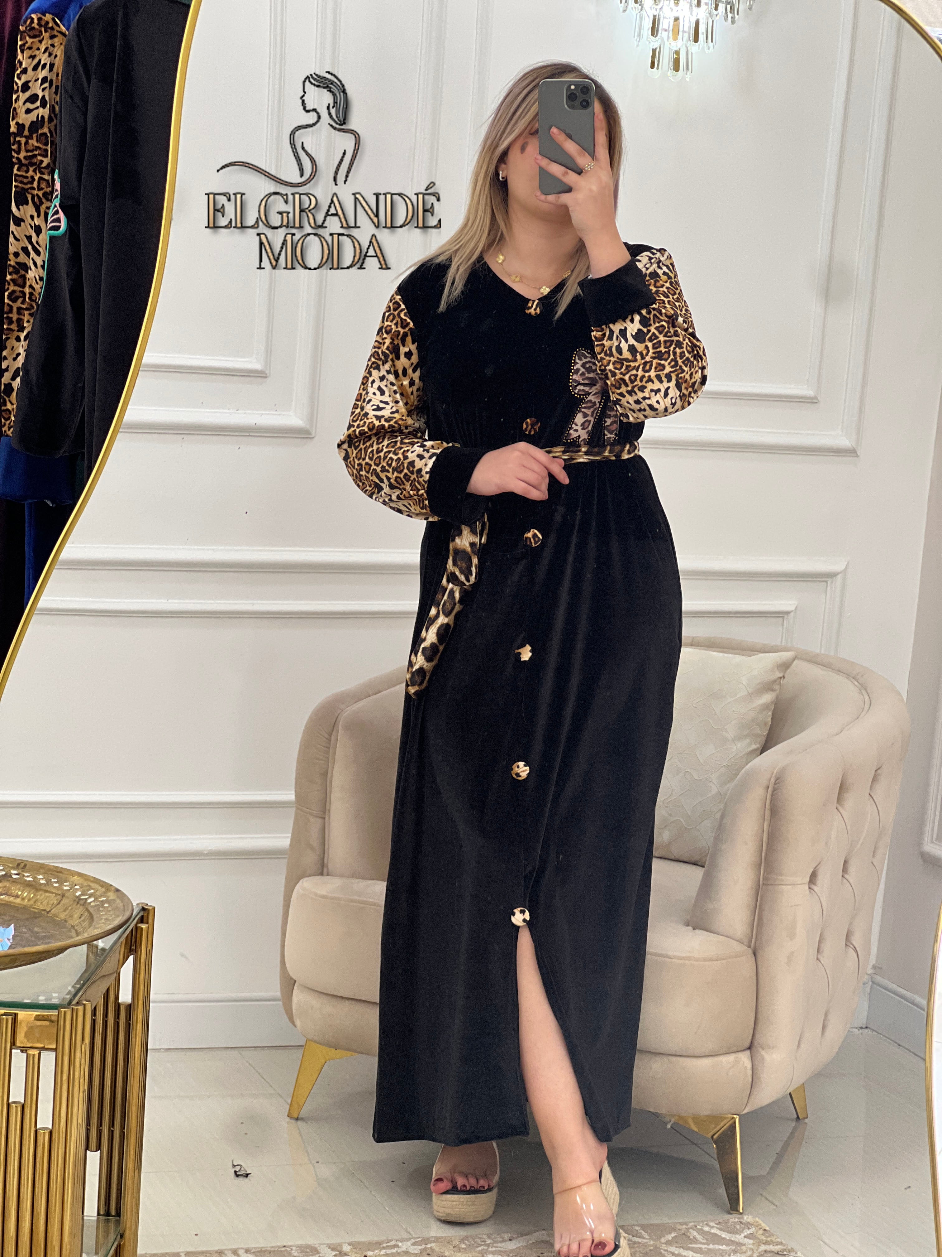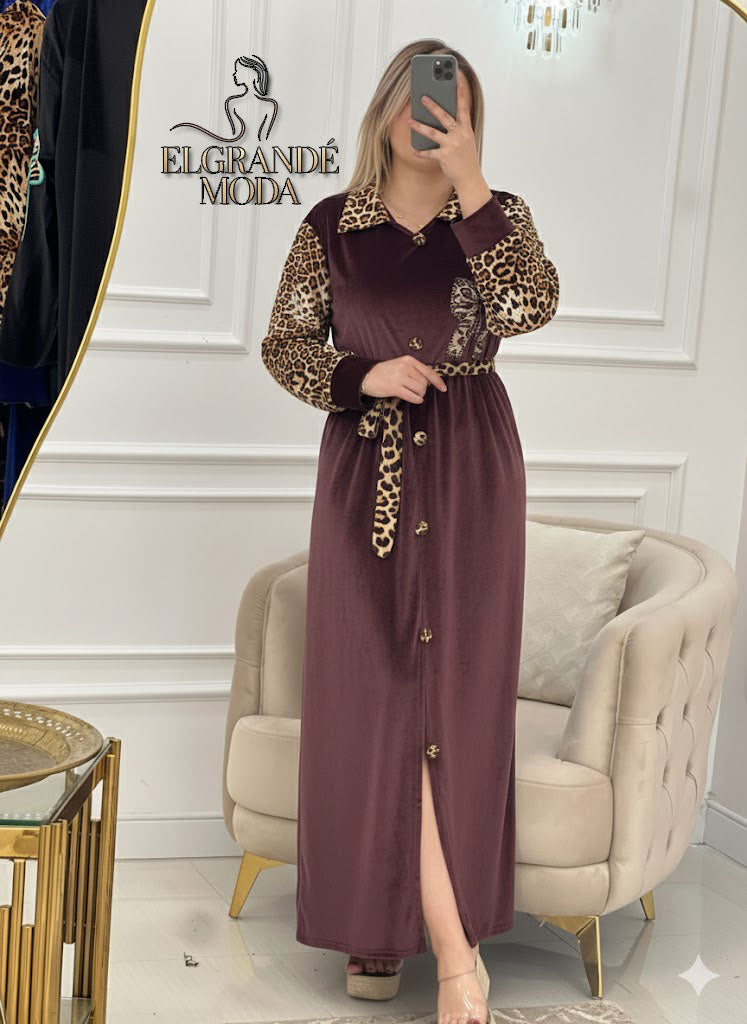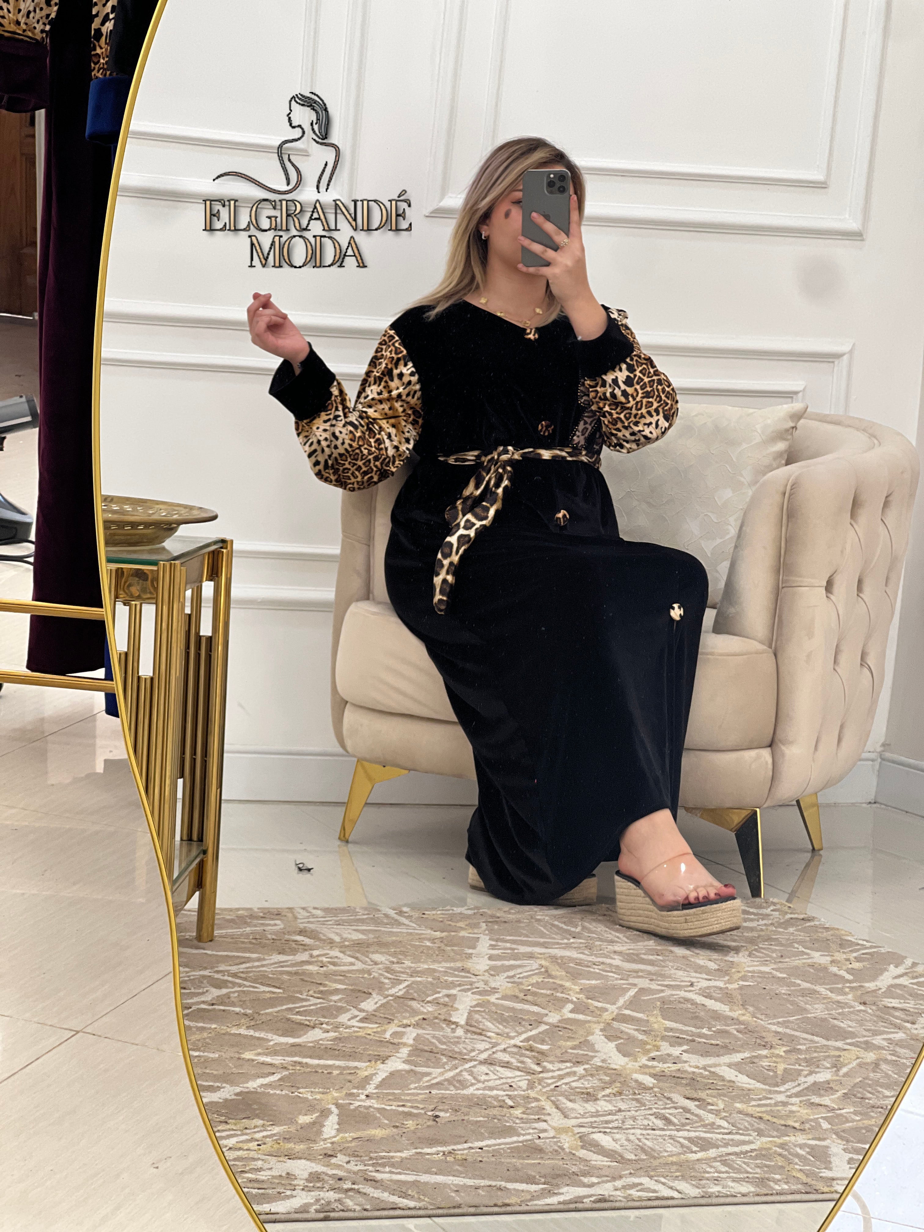 تألّقي بجاذبية لا تُقاوم مع فستان كاميليا الذي يجمع بين فخامة القطيفة ولمسة النمري 👑✨